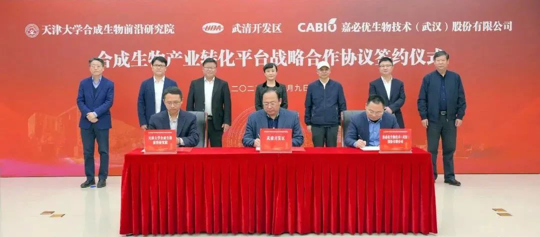 天津大學(xué)合成生物前沿研究院于2011年在武清開發(fā)區(qū)建立,歷經(jīng)十余年發(fā)展,取得了一系列代表性科研成果。2023年3月研究院與武清開發(fā)區(qū)簽訂《天津大學(xué)合成生物前沿研究院共建協(xié)議》,重點打造“一院一聯(lián)盟三平臺”。嘉必優(yōu)生物技術(shù)(武漢)股份有限公司成立于2004年,目前已有多項技術(shù)實現(xiàn)產(chǎn)業(yè)化,產(chǎn)品廣泛應(yīng)用于嬰幼兒配方食品、膳食營養(yǎng)補充劑和健康食品、特殊醫(yī)學(xué)用途配方食品、化妝護理品等領(lǐng)域。三方此次簽署戰(zhàn)略合作協(xié)議,標(biāo)志著天津大學(xué)合成生物前沿研究院的研發(fā)技術(shù)優(yōu)勢、嘉必優(yōu)在合成生物學(xué)產(chǎn)品產(chǎn)業(yè)化領(lǐng)域的雄厚實力與武清本地的生物醫(yī)藥產(chǎn)業(yè)優(yōu)勢實現(xiàn)強強聯(lián)合,未來將致力于生物醫(yī)藥產(chǎn)品實現(xiàn)規(guī)?;彤a(chǎn)業(yè)化。