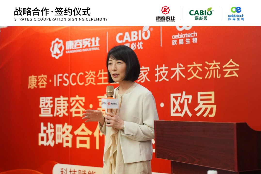 CHINA-SCC秘書長,IFSCC中國區(qū)Benefactor聯(lián)絡(luò)官袁世華女士特別致辭,對康容實業(yè)作為IFSCC全球合作伙伴的長期支持表達高度認可。她表示:“康容始終以開放姿態(tài)深度參與IFSCC全球科研活動,從前瞻性基礎(chǔ)研究到產(chǎn)業(yè)化技術(shù)攻堅,為化妝品行業(yè)注入了強勁活力。這份對科學(xué)精神的堅守與踐行,與IFSCC推動化妝品科學(xué)發(fā)展的目標深度共鳴。”