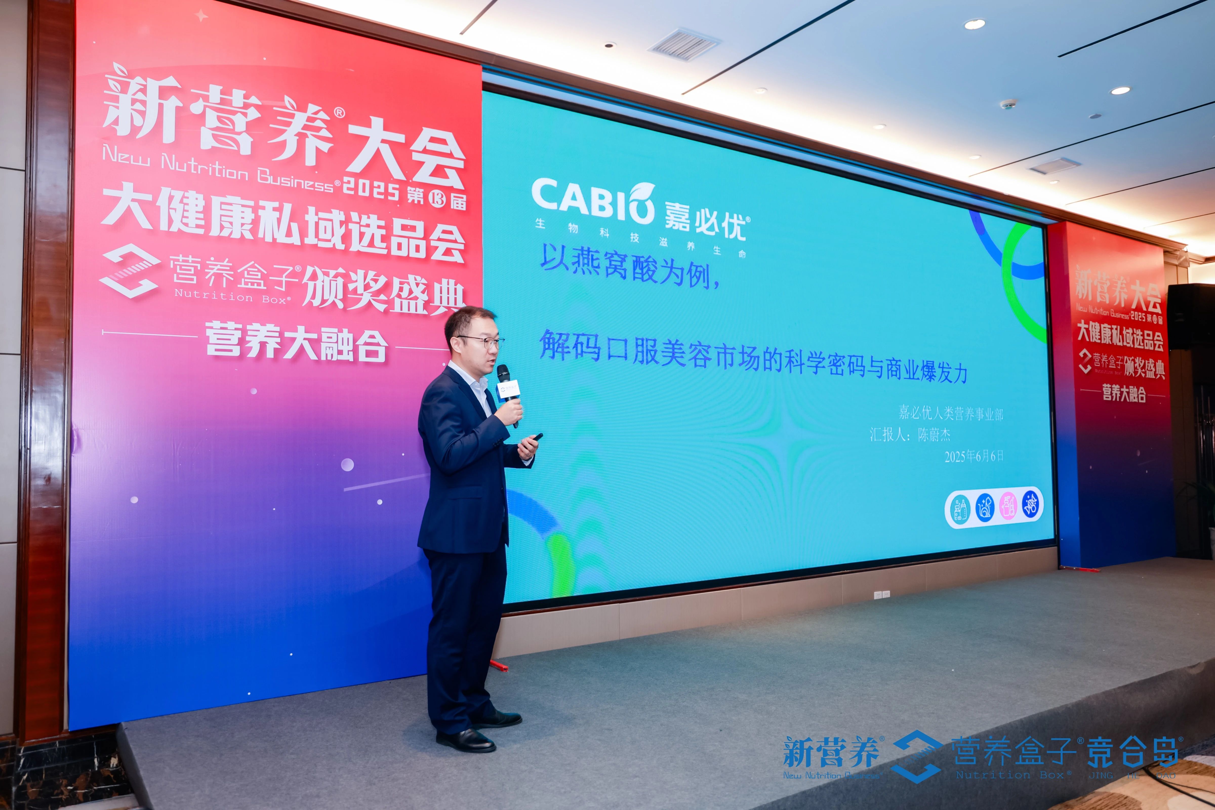 6月6日上午,嘉必優(yōu)人類營(yíng)養(yǎng)事業(yè)部大健康業(yè)務(wù)經(jīng)理陳蔚杰(Jason Chen)舉辦【以燕窩酸為例,解碼口服美容市場(chǎng)的科學(xué)密碼與商業(yè)爆發(fā)力】的主題演講。燕窩酸(SA,即N-乙酰神經(jīng)氨酸)作為新食品原料,已于2017年獲得國(guó)家衛(wèi)健委的批準(zhǔn),適用于兒童、成人、老年人等全生命周期人群。隨著消費(fèi)者對(duì)健康和美容需求的不斷增長(zhǎng),燕窩酸在美容口服產(chǎn)品中的應(yīng)用逐漸被市場(chǎng)認(rèn)可。本次主題演講,Jason Chen以嘉必優(yōu)的燕窩酸為例,調(diào)研了該原料在口服美容市場(chǎng)的行業(yè)現(xiàn)狀和未來(lái)發(fā)展趨勢(shì)。燕窩酸行業(yè)技術(shù)門檻較高,嘉必優(yōu)燕窩酸是其全資子公司中科光谷聯(lián)合中科院合肥物質(zhì)研究院自主研發(fā)的科技成果,中科光谷擁有完全自主的知識(shí)產(chǎn)權(quán)。嘉必優(yōu)燕窩酸是中國(guó)0001號(hào)化妝品新原料,擁有30多項(xiàng)專利,燕窩酸純度高達(dá)98%(HPLC)。目前,嘉必優(yōu)燕窩酸廣泛應(yīng)用于口服美容產(chǎn)品、功能性食品、保健食品和化妝品及個(gè)人護(hù)理領(lǐng)域。 隨著口服類美容食品需求增加、人口老齡化進(jìn)程加速、膳食補(bǔ)充劑行業(yè)需求巨大等,燕窩酸市場(chǎng)認(rèn)可度將會(huì)逐步提升、市場(chǎng)規(guī)模也將不斷擴(kuò)大,Jason Chen通過(guò)大量數(shù)據(jù),預(yù)計(jì)燕窩酸產(chǎn)品具有極大的市場(chǎng)爆發(fā)力并在未來(lái)更具產(chǎn)業(yè)應(yīng)用前景。